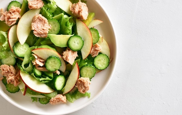 This tuna salad sandwich is lighter and more satisfying. Mix a tuna can of 3 ounces with mashed avocado or low-fat mayo, then eat it with cucumbers or your favorite veggies. You’ll get protein from tuna and tons of fiber from the veggies.